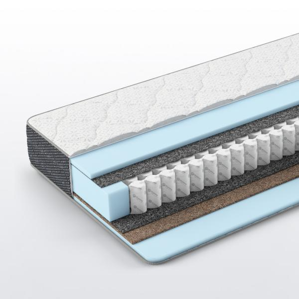 Матрас, созданный на основе пружинного блока TFK 500, сочетает в себе недорогую цену с высоким качеством и удобством. Натуральная кокосовая койра с одной стороны обеспечивает жесткость и равномерное распределение веса, а другая сторона, благодаря сочетанию термовойлока и эластичного пенополиуреатана, подстраивается под форму тела, обеспечивая мягкость и комфортный сон. Данная модель имеет двустороннюю жесткость, подходящую большинству пользователей.